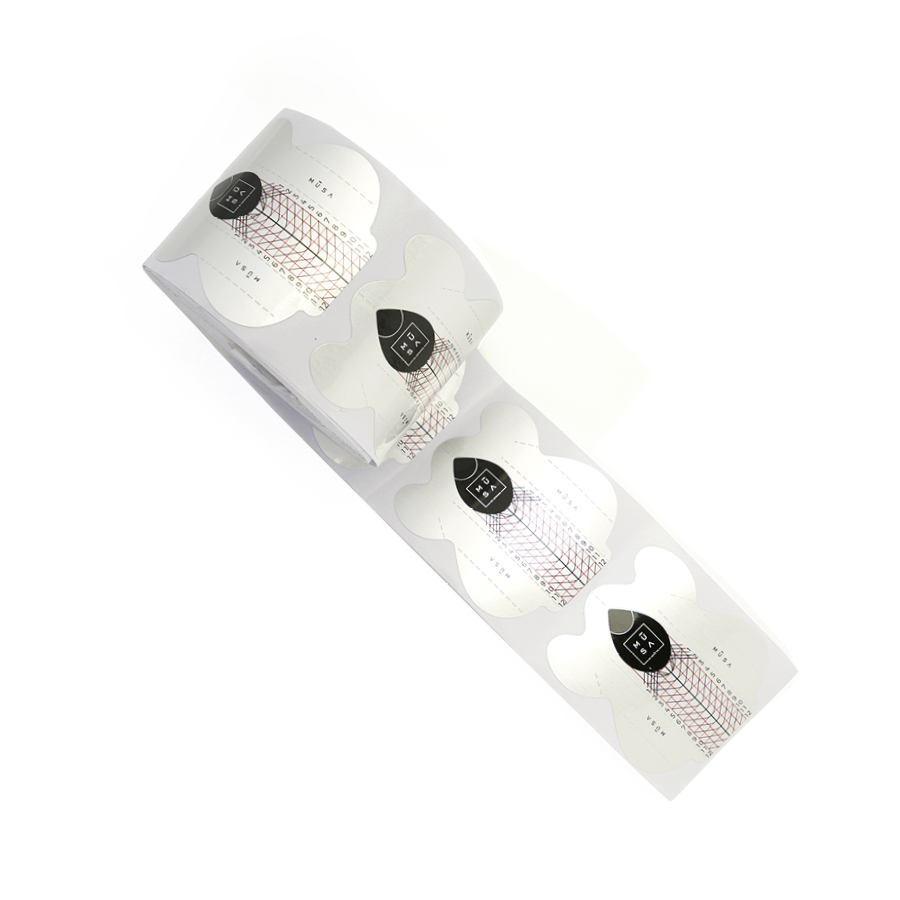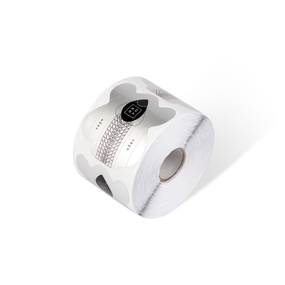 Rouleau de 300 chablon pour ongles, nouveau produit en aluminium. Idéal pour tous les travaux car ils présentent des lignes directrices pour faciliter la reconstruction de tout type de forme. Grâce à leur rigidité, ils maintiennent parfaitement la courbure.
